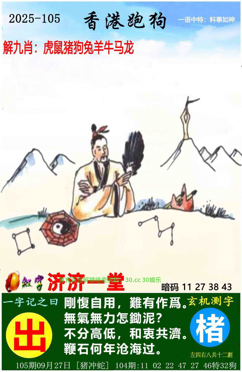 105期:今期猪牛狗看定,特碼旺小和单出开狗44准 ①杀肖:龙鼠兔 ②图解:猪牛狗虎羊 |
