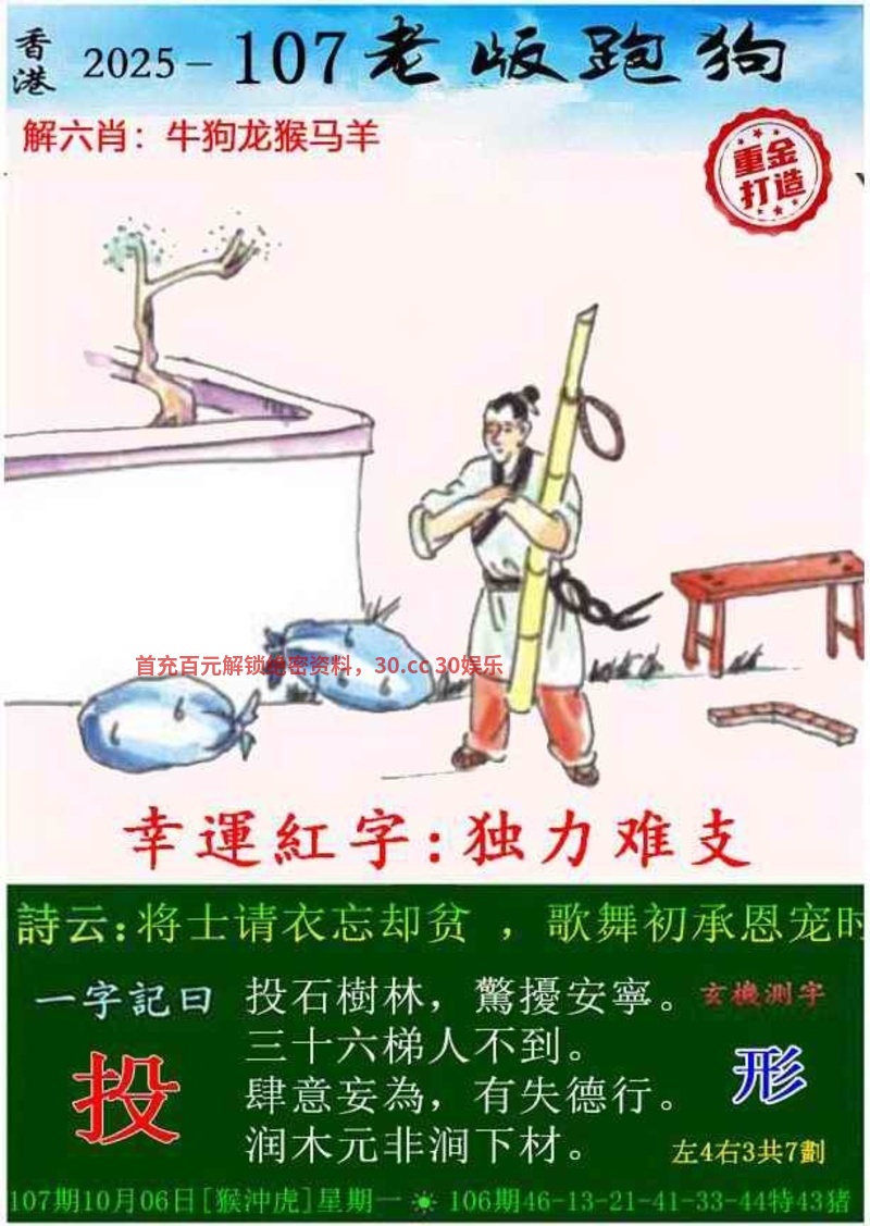 101期:今期牛马狗看定,特碼旺大合单出开蛇25准 ①杀肖:龙鼠猪 ③大数+合单 |